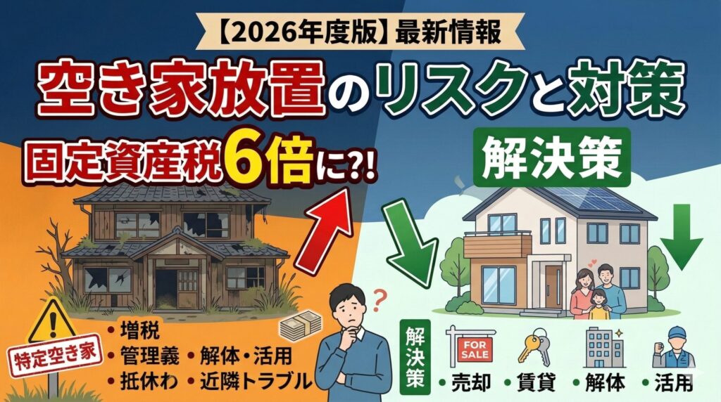 本記事では、コストと手間を最小化したい決裁者や不動産所有者に向けて、2026年の最新法制度に基づく「特定空き家」「管理不全空き家」への指定要件、具体的な税金増加のシミュレーション、そして今すぐ取り組むべき現実的な出口戦略(売却・活用・解体)について、徹底的に解説します。